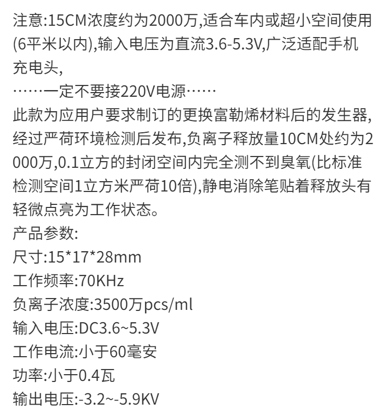 超迷你型负离子发生器DC 5V/12V